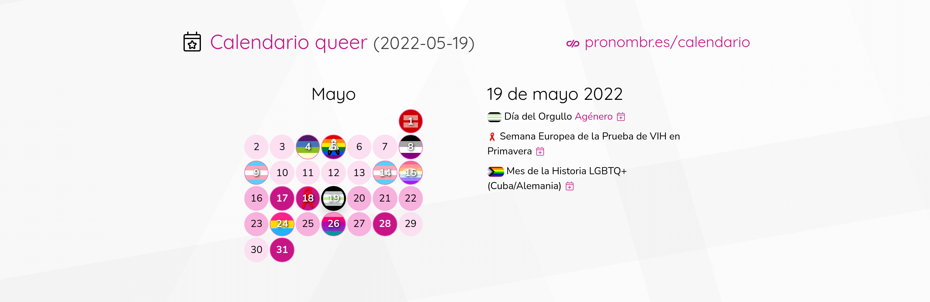 Texto alternativo: Una bandera rectangular con siete franjas horizontales del mismo ancho: Negro, gris, blanco, verde limón, blanco, gris, negro Día del Orgullo Agénero